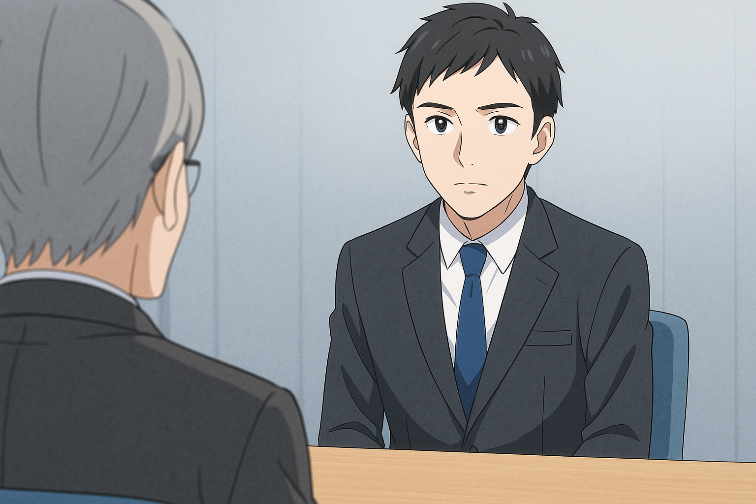 当日は、10分前に会場に到着し、インターホンを押すとすぐに中に通されました。すると、面接を担当される3名の方(支部長1名、副支部長2名)はすでに揃っておられ、「お待ちしておりました」と笑顔で迎えていただきました。もともとの予定より10分前倒しで、面接がスタート。