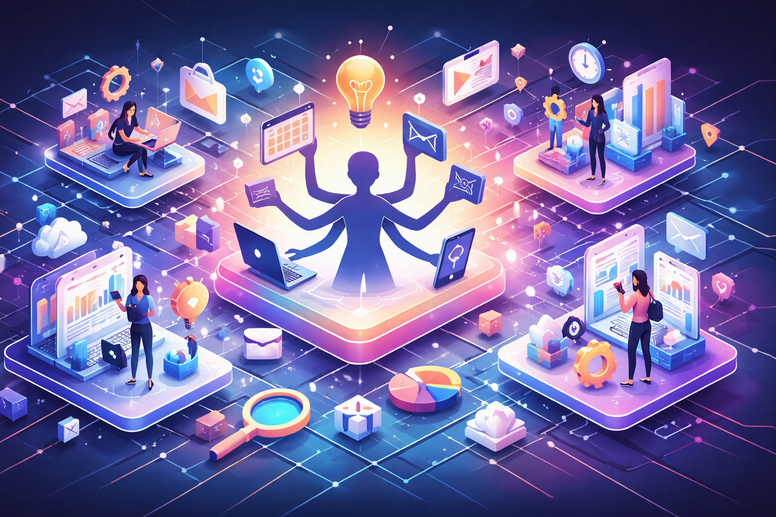 こうして考えてみると、現代のマルチタスクとは、一人の人間が無理をして同時処理することではありません。
